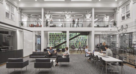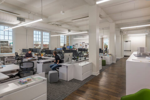 The ground level has approximately 10,000 sf of restaurant/retail space while the remaining ground floor area and the upper three floors are offices. The lead tenant is Perkins + Will Architects. This historic building will be in the heart of a planned six-acre, mixed-use transit-oriented development.